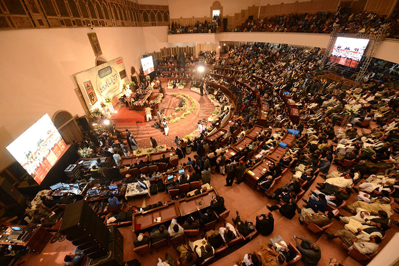 Dr Tahir-ul-Qadri presided over the ceremony, whereas Punjab Governor Chaudhry Muhammad Sarwar was the chief guest on the occasion. The prominent speakers who shared their views included Sardar Attique Ahmed Khan, Dr Muhammad Ajmal Qadri, Provincial Minister Sayyid Saeed-ul-Hassan Shah, Khawaja Ghulam Qutub-ud-Din Faridi, Dr Farooq Sattar, General (r) Ijaz Awan, Bushra Rehman, Dr Sughra Sadaf, Ms. Sofia Baidar, Orya Maqbool Jan, Qayyum Nizami, Dr Tahir Hameed Tanoli, Sayyid Samsam Ali Shah Bukhari, Maulana Sayyid Abdul Khabir Azad, and Khalid Pervez.