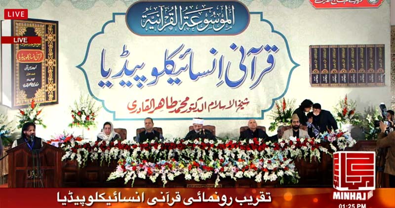 Addressing the inaugural ceremony of the Quranic Encyclopedia written by Shaykh-ul-Islam Dr Muhammad Tahir-ul-Qadri, the distinguished speakers stated that the Holy Quran is the Word of Allah that contains solutions to all the problems facing the humanity. They said that the Encyclopedia, which is comprehensive in nature, is an intellectual treat for those conducting research on Islam as well as those interested in understanding the Divine Book. The people belonging to all walks of life will benefit from its reading in a big way.