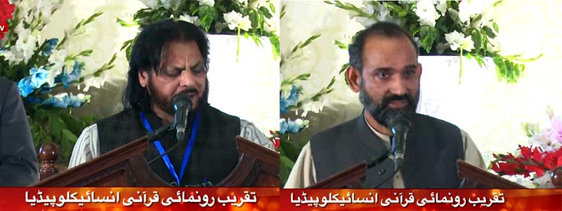 Congratulating Shaykh-ul-Islam Dr Muhammad Tahir-ul-Qadri on the publication of the Quranic Encyclopedia, former Prime Minister of Azad Kashmir Sardar Attique Ahmed Khan underlined the need of having this Encyclopedia in every household. He said that by reading it, one can easily understand as to what it is that Allah demands of us. He said that he learns from the writings and the speeches of Shaykh-ul-Islam. Provincial Minister for Religious Affairs Sayyid Saeed-ul-Hassan Shah spoke in the Arabic language and shared the Naat verses with the audience.