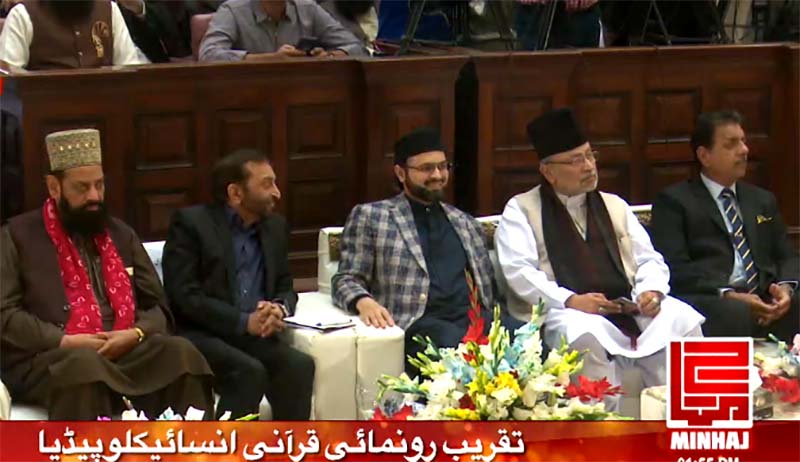 Addressing the ceremony, Dr Tahir-ul-Qadri said that knowledge contained in the Holy Quran is very detailed and those who cannot understand it have a problem with their understanding capacity. He said that the Quranic Encyclopedia consists of 8 volumes that have 5000 topics discussed in them. He expressed his gratitude to Allah Almighty Who enabled him to render this great scholarly, intellectual and religious service. He also thanked the leading journalists, religious scholars, Mashaykh, politicians and representative of legal fraternity and political parties for attending the inaugural ceremony of the Encyclopedia.